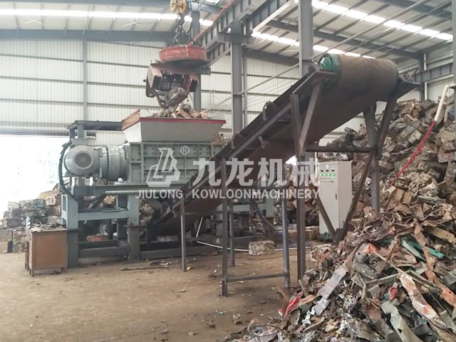 云南廢鐵壓塊撕碎現場